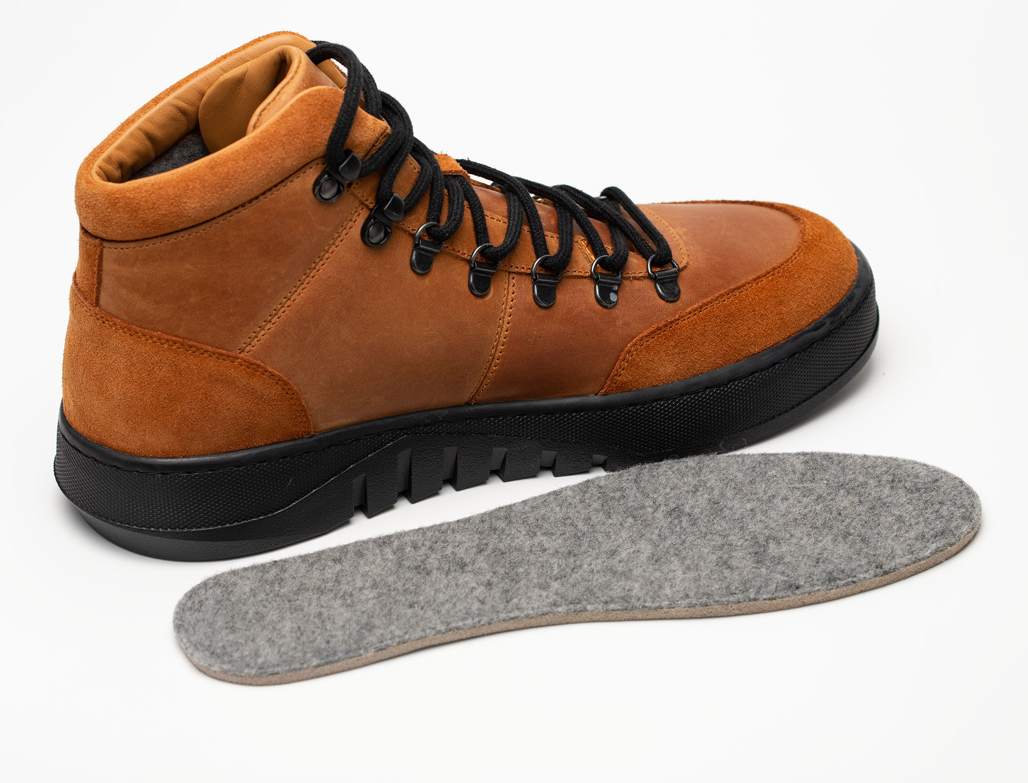 Ботинки выполнены из натуральной кожи, которая отличается прочностью, мягкостью и устойчивостью к износу. Внутренняя подкладка из байки сохраняет тепло в прохладную погоду, при этом позволяет ноге «дышать», предотвращая перегрев.
